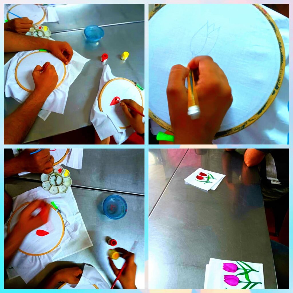 As part of the visit, the students actively engaged with the inmates of the centre. Notably, Ms. Anaswara, one of the students, took the initiative to guide and assist the inmates in creating artwork. Fabric materials were provided for this purpose, and the students demonstrated and taught the inmates how to create art using these materials.